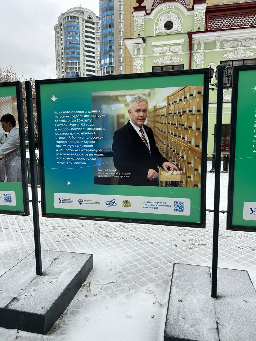 В центре Екатеринбурга, на улице Вайнера (вблизи пересечения с улицей Радищева) открылась фотовыставка, включающая 32 фотографии специалистов вуза с описанием их достижений и научно-исследовательских работ.